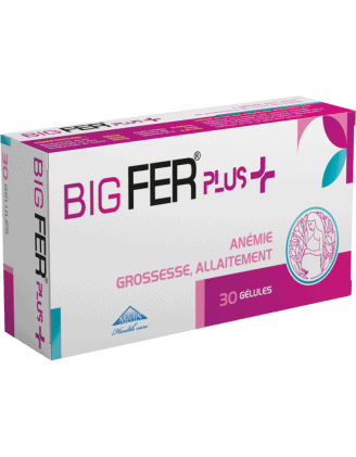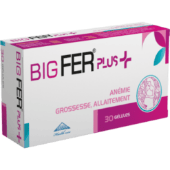 BigFer Plus, avec sa formule adaptée pour la femme enceinte avec le Fer, le zinc, le cuivre mais surtout la vitamine B9…