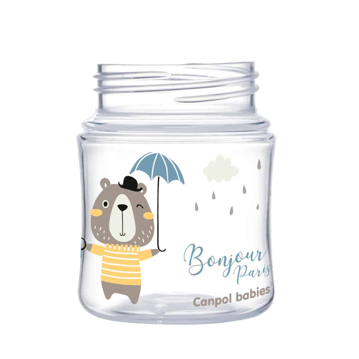 La bouteille EasyStart Bonjour Paris est fabriquée dans un matériau sûr et sans BPA. Il est léger, transparent et sa forme particulière offre un confort d’utilisation. L’échelle claire et précise permet une préparation rapide des aliments et la large ouverture facilite le nettoyage du biberon et de la tétine. Le biberon est compatible avec les tire-lait pour bébés Canpol, grâce auxquels le lait pompé peut être immédiatement donné au bébé. Contenance 120 ml.