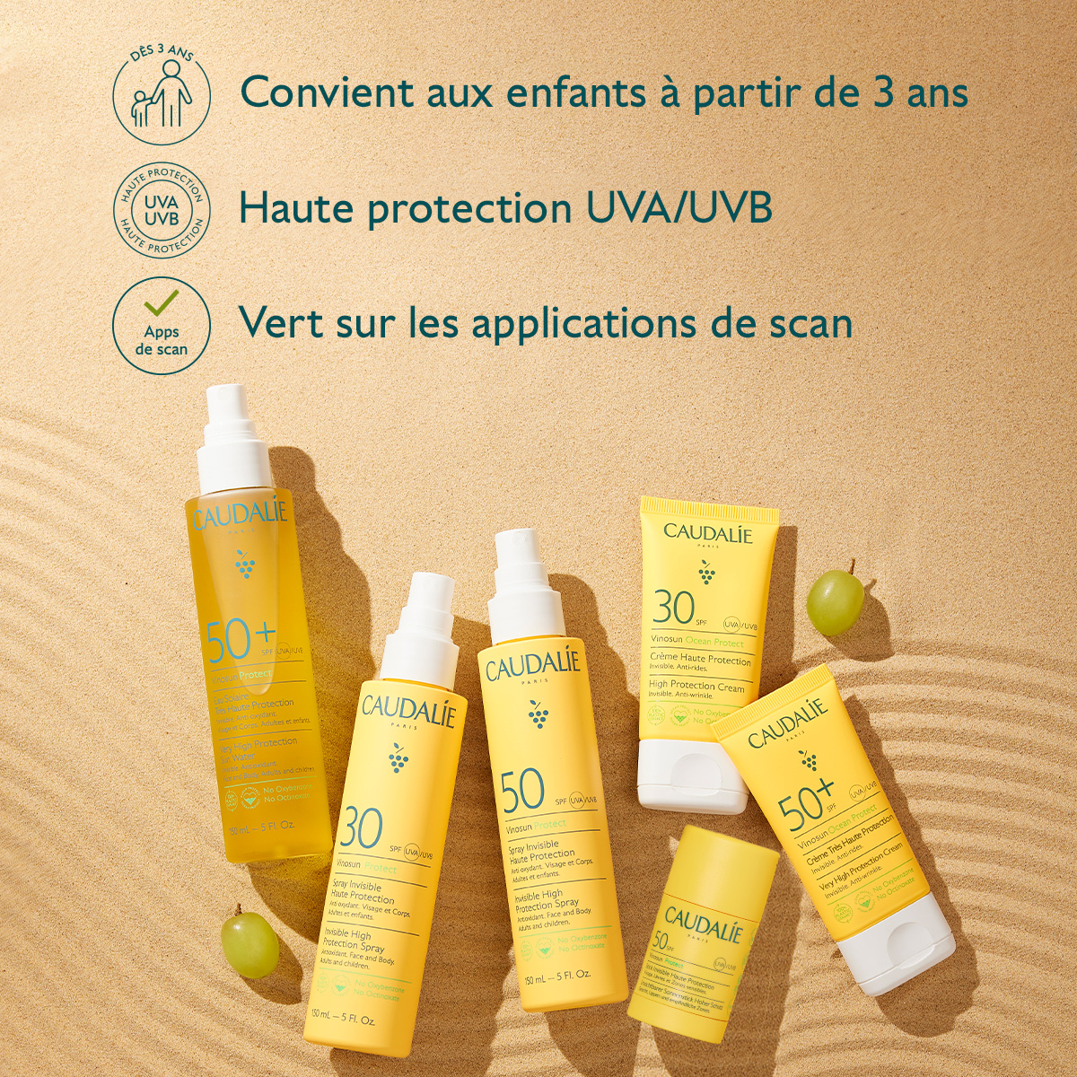 | Oui, la formule clean et douce de la Crème Très Haute Protection SPF50+ convient aux enfants à partir de 3 ans. Veuillez suivre les recommandations de ne pas exposer les enfants au soleil sans t-shirt, lunettes de soleil et chapeau et réappliquer la crème solaire toutes les 2 heures en cas d’exposition. | |