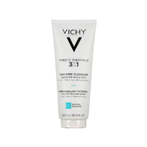 Vichy Pureté Thermale Démaquillant Intégral 3en1 Peau Sensible 300 ml est à la fois un lait nettoyant, une lotion tonique et un démaquillant yeux. En un seul geste, il élimine efficacement et en douceur le maquillage, les impuretés et les particules de pollution, sans fini gras.